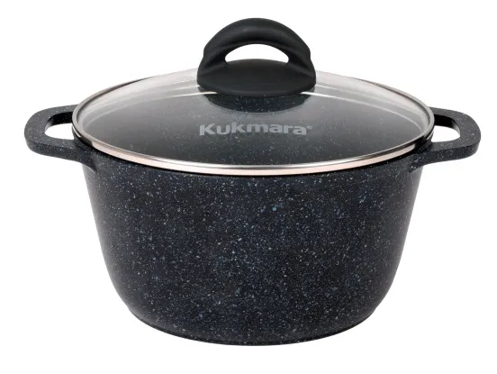 На ряде изделий алюминиевой посуды с АП для индукционных плит линий "Granit ultra Induction" и "Marble Induction": кастрюлях, кастрюлях-жаровнях, казанах, блинницах логотип «Kukmara» наносится  лазерным методом, на классических сковородах, сковородах-гриль с индукционным дном логотип отливается.